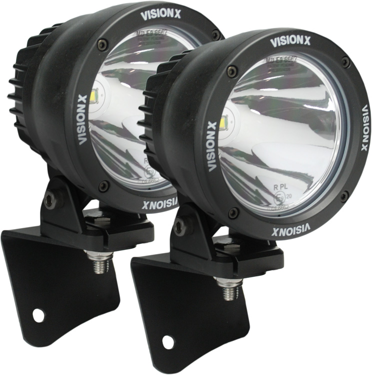 Designed to perfectly fit the 1997-2006 Jeep TJ, these brackets were machined to mount on the A-Pillar and hold single-stud mounted lights. The 4.5″ LED Light Cannon (XIL-OEA9706TJCPZ1) kit comes with two lights, a wiring harness, and mounting brackets for a plug-and-play experience. As with most Vision X vehicle-specific kits, the 1997-2006 Jeep TJ A-Pillar kit does not require any drilling to be mounted.