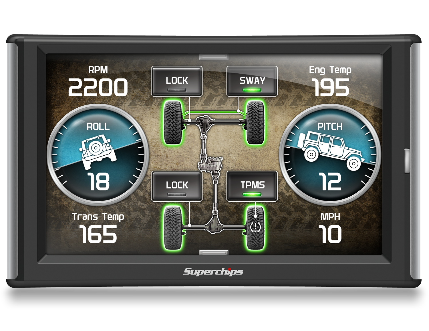 Bigger and better. That’s how Superchips describes the TrailDash2 (TD2). In addition to the new, slim case design, it was upgraded to a 5” full-color display—making it the sleekest in the industry. Superchips didn’t stop at making the display larger; they also made it better with a high-resolution screen. To complete the streamlined look, Superchips engineers added a simple HDMI-style plug for power and linking EAS accessories. Engage your lockers, bypass TPMS, and more with the Rubicon screen! The all-new EAS switch screen enables you to engage your lights and other mods on your 2003-2014 Jeep.