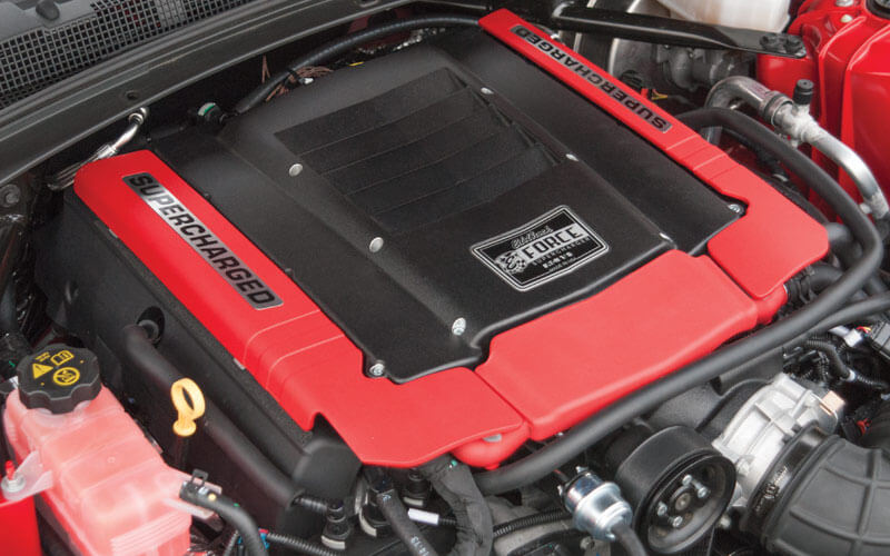 These E-Force Superchargers are designed to work with all OEM emissions equipment, which will make them 50-state emissions legal (EO number pending). Combined with great looks (black powder-coated supercharger assembly and bright-red coil covers) and an incredible 3-year/36,000-mile warranty, that makes these systems a great choice for your daily driver.
