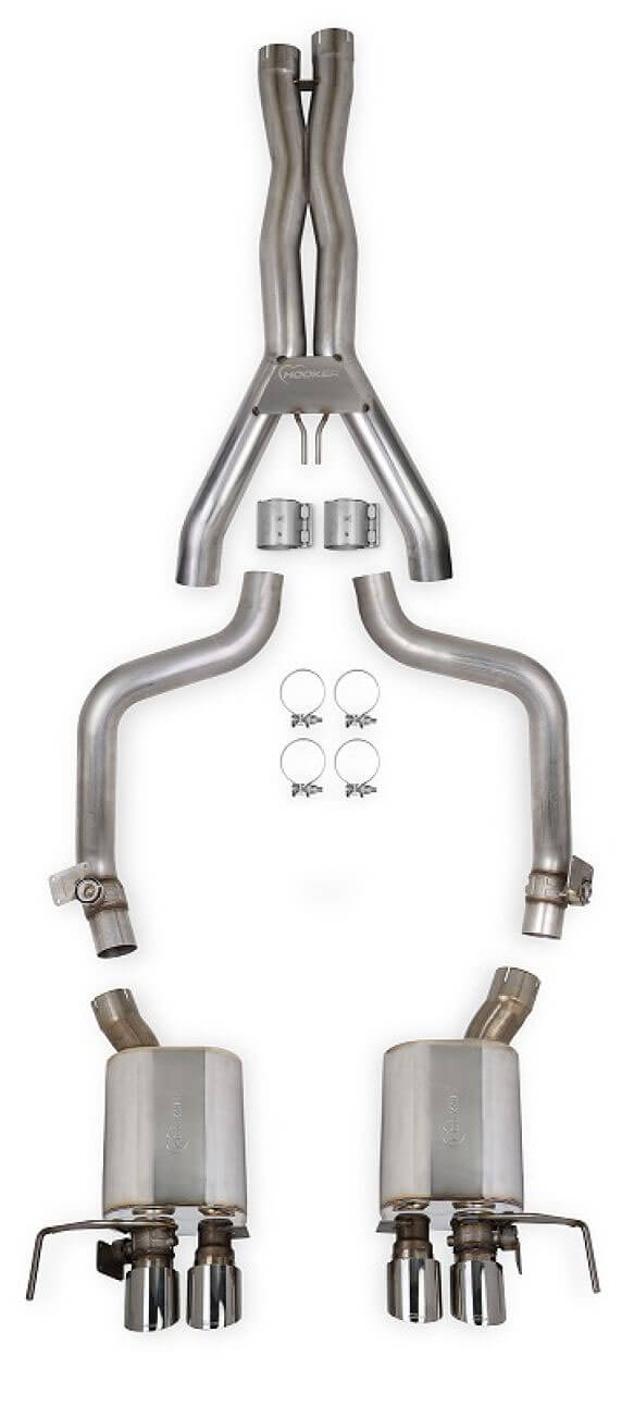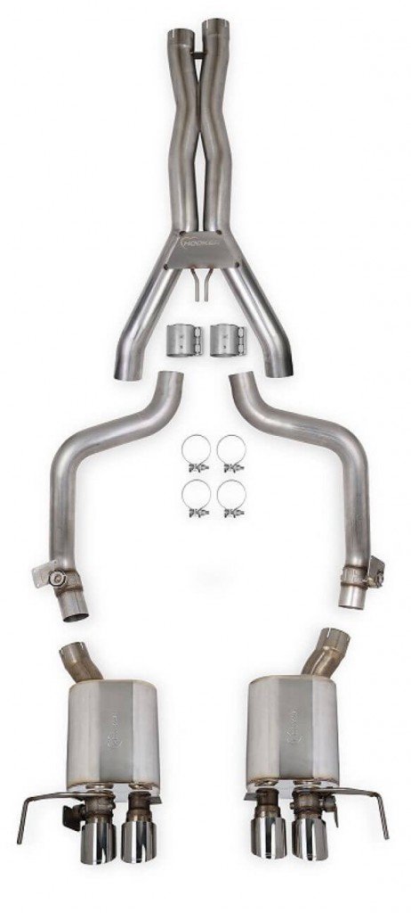 Quality welds ensure strength, longevity, and good looks—especially in combination with the 4” twin-wall polished stainless tips with laser-etched Hooker logo. The 70501349-RHKR system uses factory mounting points to facilitate installation, while Hooker’s advanced tube geometry allows for straight-through performance and maximum ground clearance. All hardware is included.