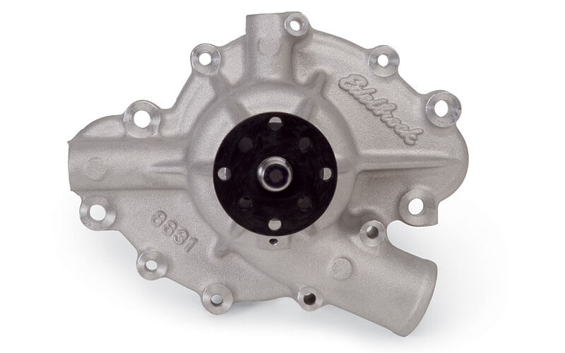 Cast at the Edelbrock foundry and machined at the company’s California manufacturing center, Victor Series water pumps are designed for GM LS applications and feature A356 aluminum, a heavy-duty 3/4” bearing, billet steel hub, improved impeller for increased coolant flow, and a durable 3/4” pilot shaft. These pumps are reverse rotation and are available for a right or left return line configuration.
