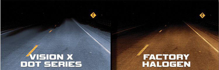 The DOT Series line of halogen replacement bulbs from Vision X features a B1 coating to provide a super-white light while remaining fully DOT approved. The automotive bulbs in the DOT Series line will shine brighter and farther than standard bulbs, provide more natural light color, improve depth perception, and reduce eye fatigue.