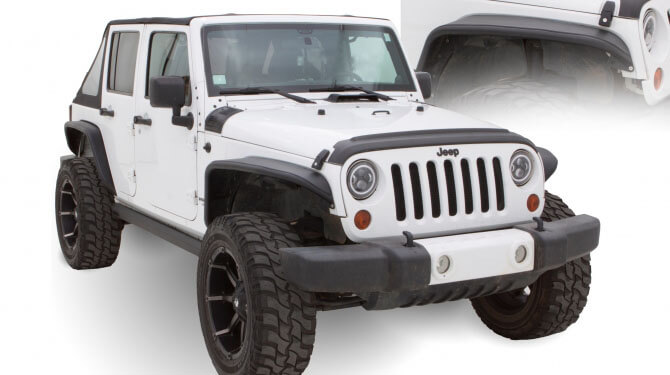 Give your 2018 Jeep Wrangler JK/JKU reinforced protection and upgraded style with aluminum tube fender flares from Bushwacker. These tough-as-steel yet lightweight flares feature 1.5” tubing rugged enough to stand up to all of the off-roading, trail-crawling abuse you can throw at them. Plus, they increase clearance for larger tires and more dynamic articulation.