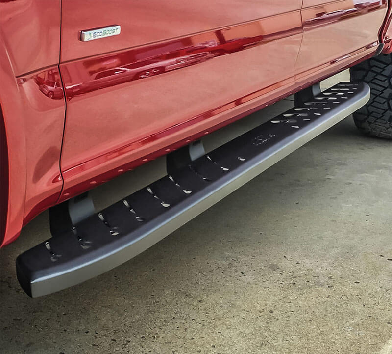Designed with indented louvers to maximize step area traction, Thrasher runner boards from WESTiN Automotive offer an aggressive pre-runner style, a corrosion-resistant textured black powdercoat, and injection-molded bracket covers for a clean, polished look. One-piece stamped steel construction.