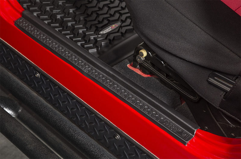 Made from impact-resistant, injection-molded ABS plastic, All-Terrain Door Entry Guards from Rugged Ridge feature the company’s signature deep-tread design for protection that hasn’t neglected the importance of good looks. Longer and wider than most other entry guard products, 11216.22 enjoys a patented design that provides a body-hugging contour and more comprehensive coverage.