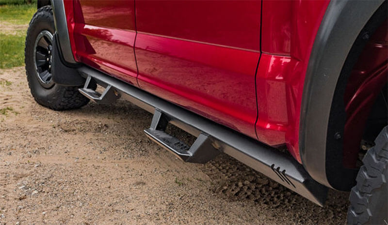 EpYx drop down steps from N-FAB add a dash of sleek, polished, and functional style to your pickup, with an expanded step plate for exceptional access to lifted and stock rigs alike. The EXF19CC-TX set was designed for your 2019 Ford Ranger, featuring angular steel construction for lasting strength and modular brackets for a quick and painless installation.