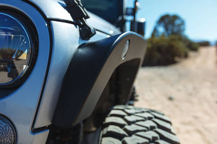 With a unique curved design and smooth interior that prevents mud and debris from accumulating in your Jeep Wrangler’s wheel well, the new Trailline fenders from Go Rhino are fabricated from sturdy steel further protected by a textured-black powdercoat. Trailline fenders come in two widths—3” and 6”—to give you the look and tire clearance you want. Sold in pairs for front and rear.