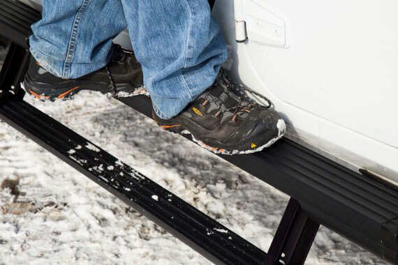 When the door opens, the ActionTrac control module deploys the electric step 8” below the top step. When the door closes, the extended step retracts, providing plenty of off-road clearance. The control module detects any obstruction in the path of the step, pausing operation as required to eliminate the risk of pinch or descent into damaging obstacles. Built-in LED lights also flare to life upon deployment to provide extra visibility in dark conditions, while the single, weather-protected rotary motor ensures quiet, quick, and maintenance-free operation. Plus, their powder-coated aluminum housing helps to protect your vehicle’s finish from kicked-up rocks and debris.